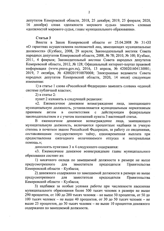 Закон Кемеровской области - Кузбасса от 26.12.2025 N 188-ОЗ "О внесении изменений в некоторые законодательные акты в сфере обеспечения деятельности лиц, замещающих государственные должности и муниципальные должности" (принят Законодательным Собранием Кемеровской области - Кузбасса 26.12.2025)