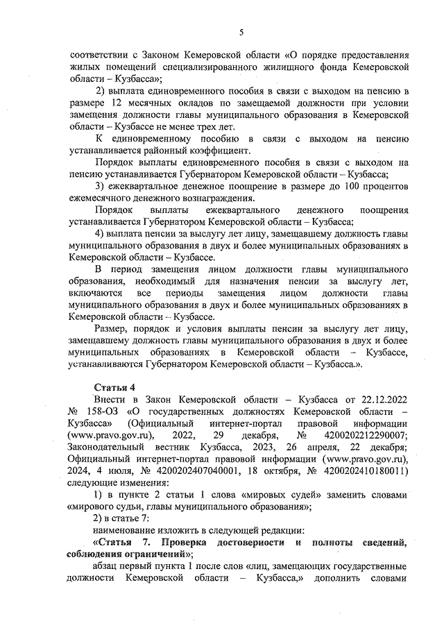 Закон Кемеровской области - Кузбасса от 26.12.2025 N 188-ОЗ "О внесении изменений в некоторые законодательные акты в сфере обеспечения деятельности лиц, замещающих государственные должности и муниципальные должности" (принят Законодательным Собранием Кемеровской области - Кузбасса 26.12.2025)