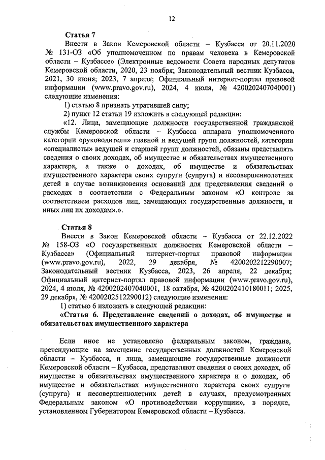 Закон Кемеровской области - Кузбасса от 03.02.2026 N 6-ОЗ "О внесении изменений в некоторые законодательные акты в сфере противодействия коррупции" (принят Законодательным Собранием Кемеровской области - Кузбасса 28.01.2026)