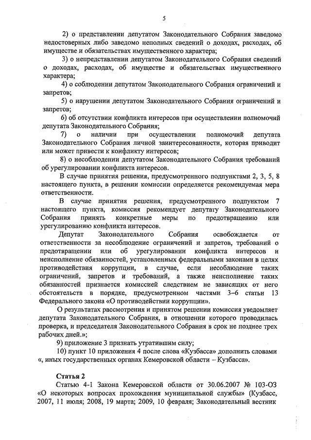 Закон Кемеровской области - Кузбасса от 03.02.2026 N 6-ОЗ "О внесении изменений в некоторые законодательные акты в сфере противодействия коррупции" (принят Законодательным Собранием Кемеровской области - Кузбасса 28.01.2026)